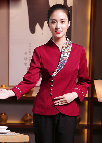 品牌:迪曼 基礎風(fēng)格: 餐廳制(zhì)服 顔色:紅(σ∑Ω∞hóng)色、藏青色 面料:聚酯纖維70% 聚氨酯彈性面料30% 厚薄: 常規 ↔∞ 說(shuō) 明(míng):圖片僅供參考,此價位面料花(huā)色<♣£ 到(dào)店(diàn)提供數(shù)百種選擇
