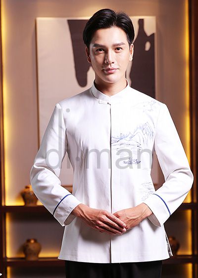 品牌:迪曼 基礎風(fēng)格: 餐廳制(zhì)服 顔色:白(bái)色 面料:聚酯纖"'↕∑維70% 聚氨酯彈性面料30% 厚薄: 常規 說(shuō) 明(mí≤→"ng):圖片僅供參考,此價位面料花(huā)色到(dào)店(diàn)提供數(shù)百種選♥•擇